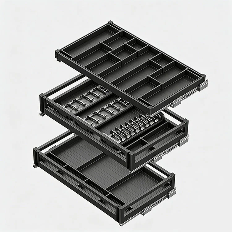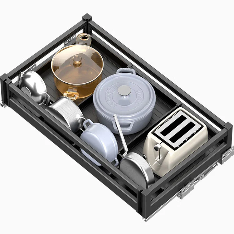 ဤအလူမီနီယမ်အလွိုင်းဆွဲထုတ်ခြင်းတောင်းသည် ပန်းကန်များ၊ အိုးများနှင့် ဟင်းခတ်အမွှေးအကြိုင်များကဲ့သို့သော မီးဖိုချောင်သုံးပစ္စည်းများကို အမျိုးအစားခွဲသိုလှောင်ရန်အတွက် အဓိကအားဖြင့် အသုံးပြုသော မီးဖိုချောင်သိုလှောင်မှုဆိုင်ရာ ဟာ့ဒ်ဝဲဖြစ်သည်။ ဤမီးဖိုချောင်သုံး ဗီရိုအံဆွဲသည် ခေတ်မီမီးဖိုချောင်များအတွက် အထူးဒီဇိုင်းဖော်ထားသည့် မြှုပ်နှံသိုလှောင်မှုဖြေရှင်းချက်တစ်ခုဖြစ်သည်။ ၎င်း၏အဓိကတွင် အလွှာလိုက်ဒီဇိုင်းနှင့် လက်တွေ့လုပ်ဆောင်ချက်များဖြင့်၊ ၎င်းသည် ရှုပ်ထွေးသောအတွင်းပိုင်းသိုလှောင်မှုနှင့် ဗီဒိုများတွင် နေရာလွတ်အသုံးပြုမှုနည်းသောပြဿနာများကို လွယ်ကူစွာဖြေရှင်းနိုင်ပြီး မီးဖိုချောင်သိုလှောင်မှုအတွက် အကောင်းဆုံးအကူအညီတစ်ခုဖြစ်သည်။