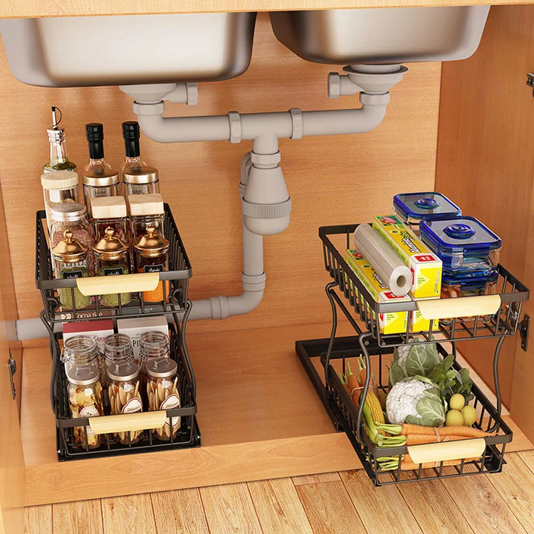 • Heavy-Duty Metal Pull-Out Kitchen Storage RackHeavy-Duty Metal Pull-Out Kitchen Storage Rack